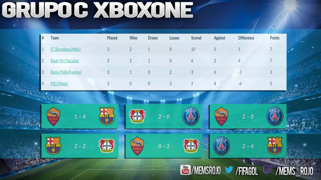 La fase de grupos ha terminado, varias sorpresas hubo en esta etapa. Quedan varios de los equipos llamados grandes de Europa. Real Madrid es uno de ellos asi como el Barcelona comandado por «FoB milky l7l».