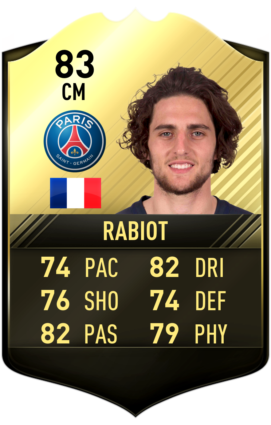 - CM : Adrien Rabiot – Paris Saint-Germain ( FRA1 ) – Francia