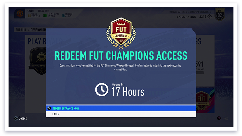 Un sistema de clasificación de FUT CHAMPIONS le otorga puntos para usar para calificar a la Liga de fin de semana.