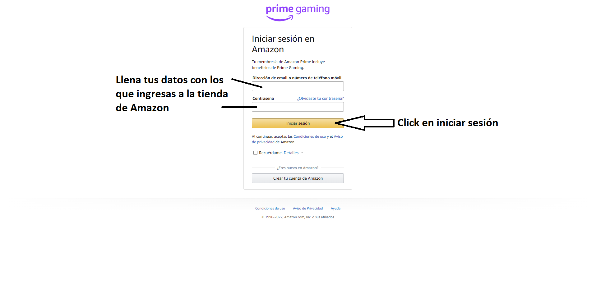 Ingresa con la cuenta de AmazonPrime