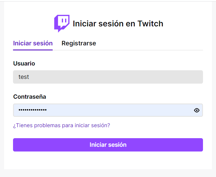 Ingresa tus credenciales de twitch