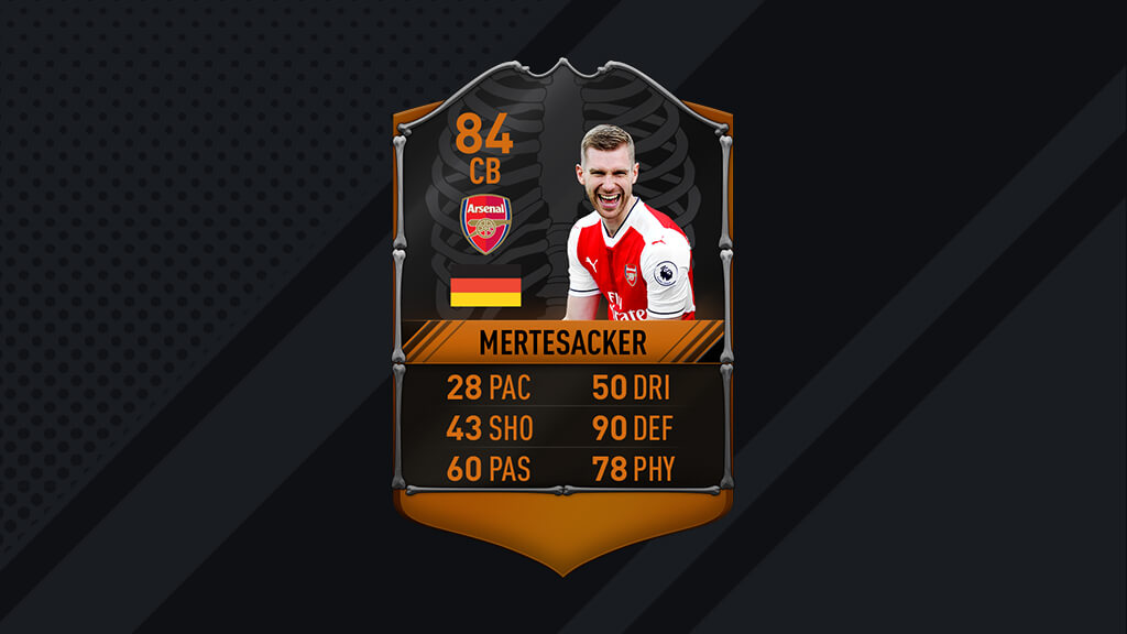 ¿Crees que puedes ganarle corriendo a este alemán tan alto? Piénsalo de nuevo… La actualización de Mertesacker en Ultimate Scream le da una mejora en Ritmo que le va bien con su ya terrorífica estadística defensiva. En Halloween, Mertesacker se convertirá en un defensa temible.