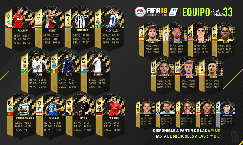 Cada semana, FIFA Ultimate Team reúne a los mejores jugadores de las competiciones nacionales e internacionales de todo el mundo. Podrás enfrentarte a este combinado en FIFA Ultimate Team.