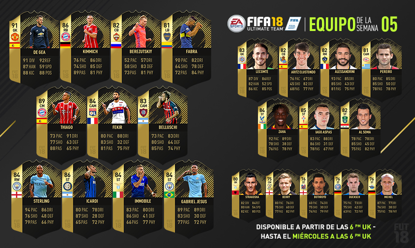 FIFA 18 – VALORACIONES DE JUGADORES del 30 al 11.