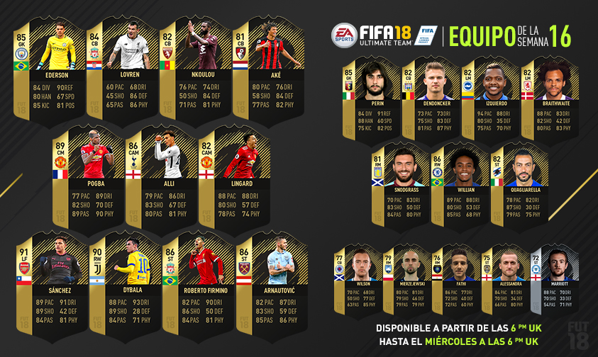 Cada semana, FIFA Ultimate Team reúne a los mejores jugadores de las competiciones nacionales e internacionales de todo el mundo. Podrás enfrentarte a este combinado en FIFA Ultimate Team.