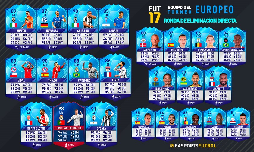Cada año los Equipos Tops de Europa compiten por ser los mejores del continent. Aqui les traemos la lista completa de los mejores jugadores de Europa, la lista se hizo tomando en cuenta el desempeño de los jugadores en la etapa de Knockout.