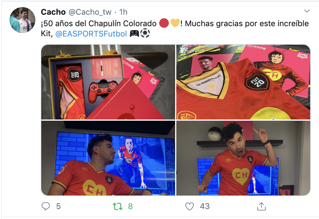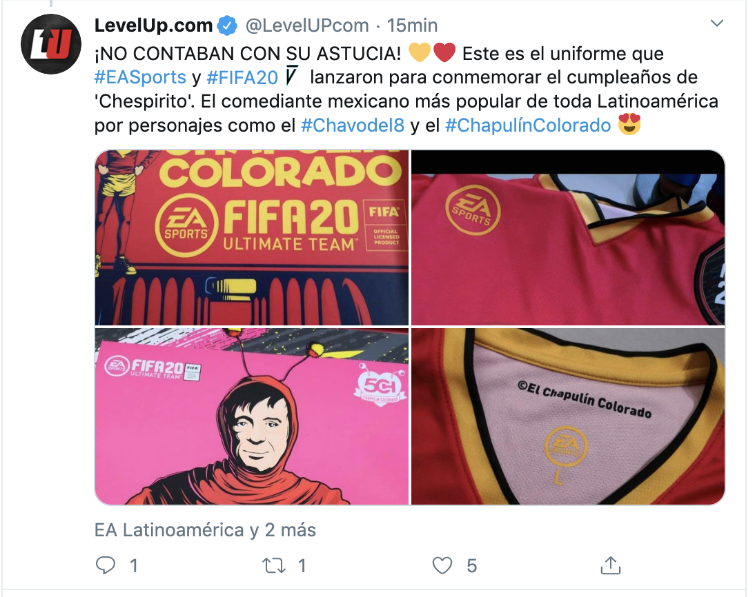 Parte de la celebración tendremos que se incluirá en FIFA20 contenido referente al Chapulín, este contenido estará disponible a partir de este 21 de febrero, contará con un Kit que podrán utilizar los jugadores dentro del modo FUT20, también banderas y vallas del chipote chillón.