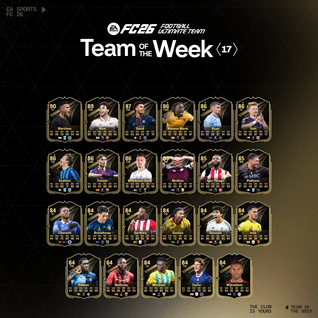 🌟 El Equipo de la Semana 18 (#TOTW18): Martinelli 95 Ritmo y Leweling 94 Ritmo Sacuden la Meta