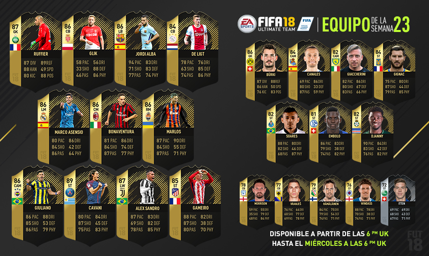 Cada semana, FIFA Ultimate Team reúne a los mejores jugadores de las competiciones nacionales e internacionales de todo el mundo. Podrás enfrentarte a este combinado en FIFA Ultimate Team.