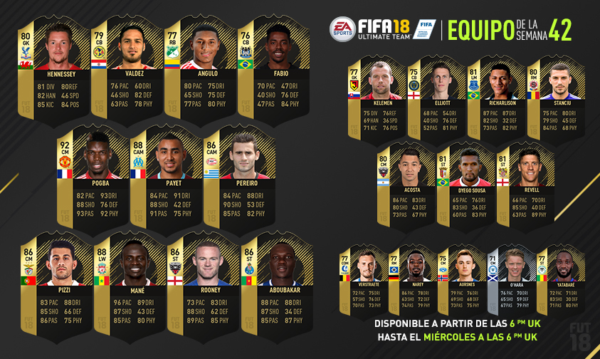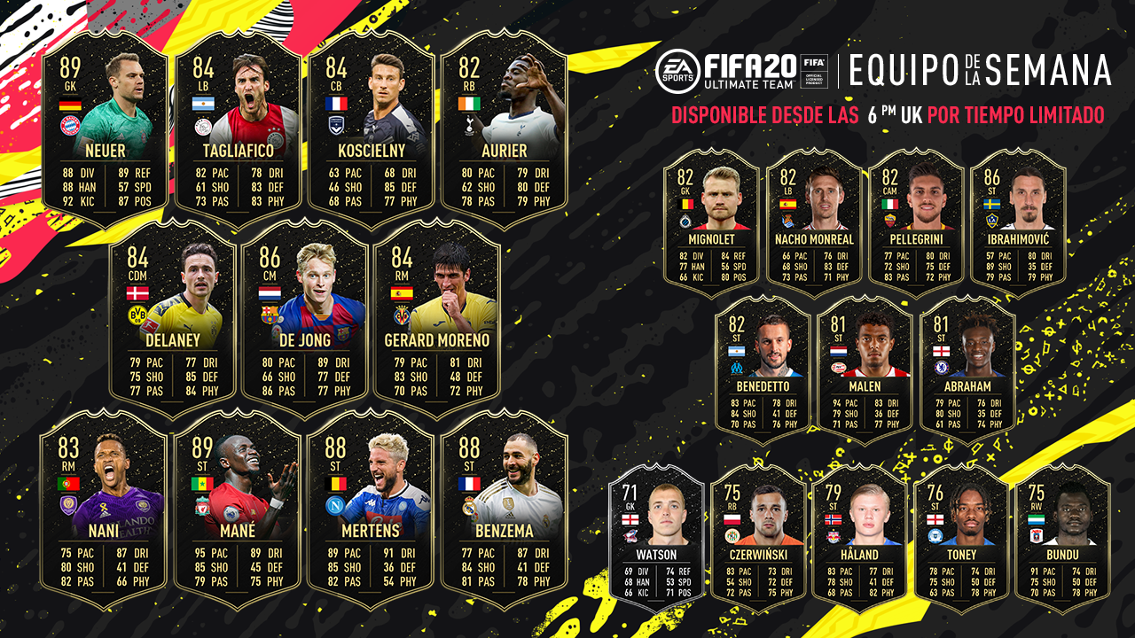 Como saben semana a semana EA trae el equipo de la semana, sin embargo solo los jugadores que tuvieron excelentes actuaciones con sus equipos durante la jornada del fin de semana tienen derecho a ser parte del Equipo de la semana. A partir de las 12:00 pm hora de México las cartas del Equipo de la semana están disponible en sobres.