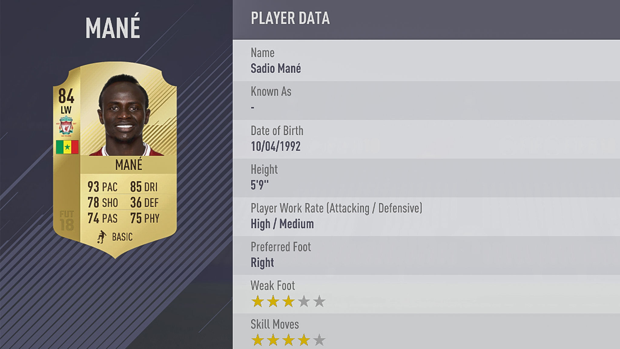 Sadio Mané’s speed is electric! With 93 Pace and 85 Dribbling, the Senegalese will terrorize defenders.