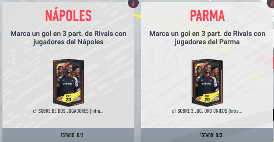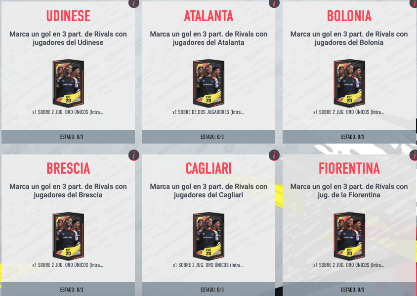 - Jugadores – Jugador del Equipo de la Semana o Momentos: Mínimo 2