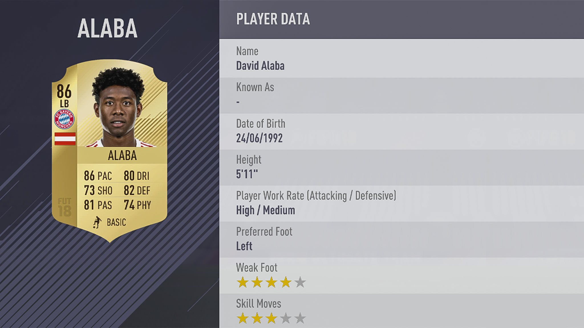 Con 86 Pace, 81 Pases, 80 Dribbling y 82 Defensa, el lateral izquierdo austríaco puede hacerlo en ambos extremos del campo.