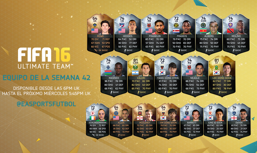 Cada semana, FIFA Ultimate Team reúne a los mejores jugadores de las competiciones nacionales e internacionales de todo el mundo. Podrás enfrentarte a este combinado en FIFA Ultimate Team.